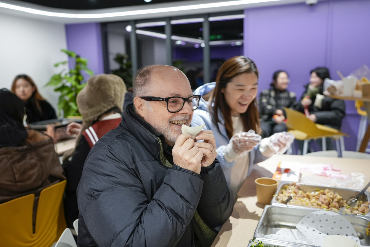 “这一锤我来!自己打的年糕最好吃!”石臼里放着蒸好的米粉,随着一锤一锤地击打,糕团逐渐成型。对于英国籍学生Bryan而言,打年糕让她感受到了浓浓的中国年味。